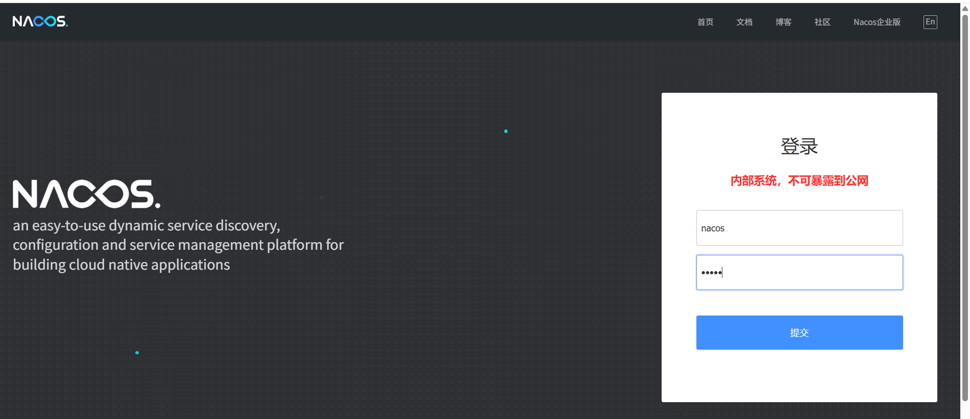 nacos.security.ignore.urls=/,/error,/**/*.css,/**/*.js,/**/*.html,/**/*.map,/**/*.svg,/**/*.png,/**/*.ico,/console-ui/public/**,/v1/auth/**,/v1/console/health/**,/actuator/**,/v1/console/server/**
