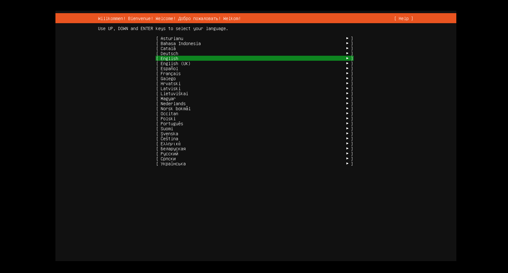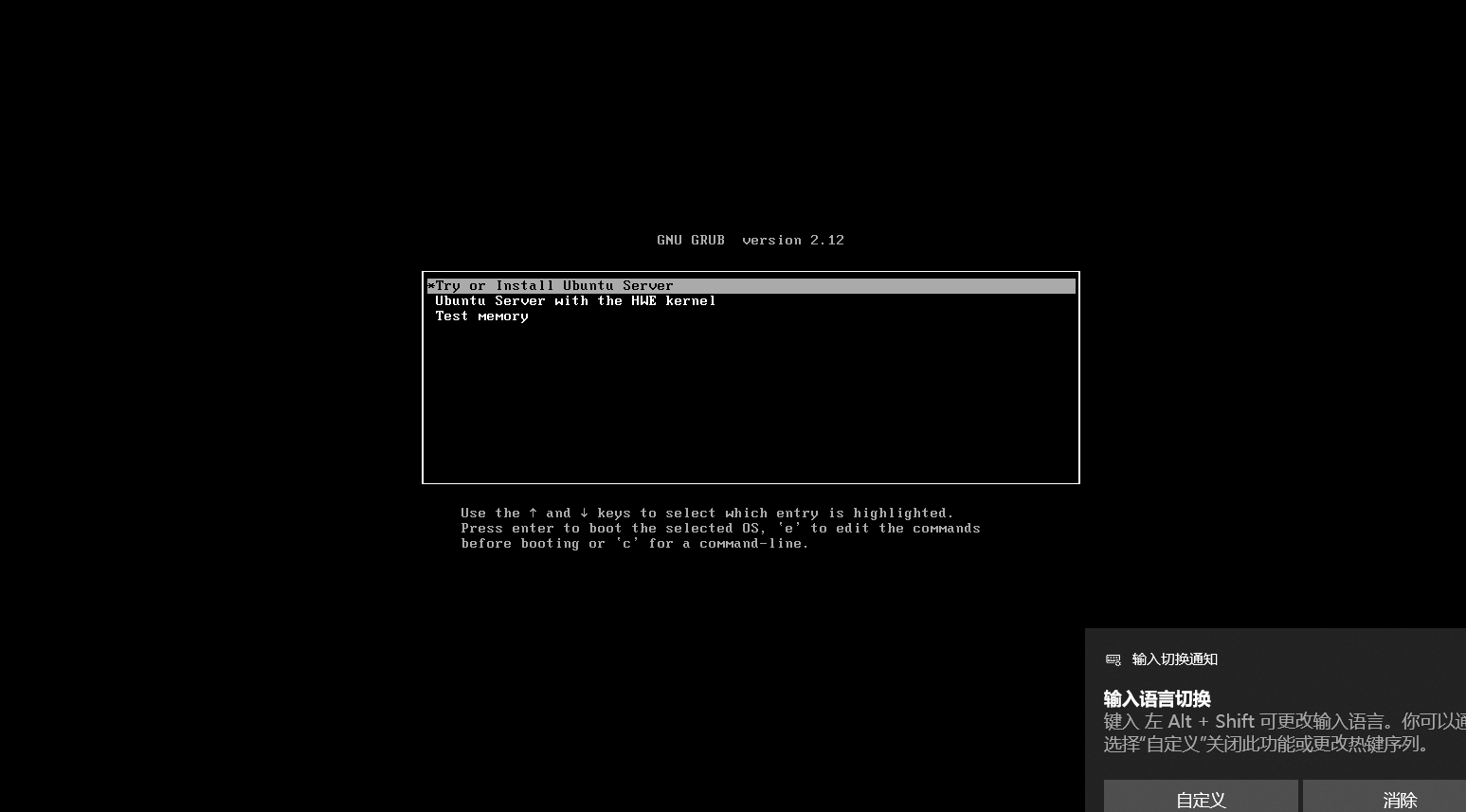 选择语言,我这里选择了英语,按住Enter键继续