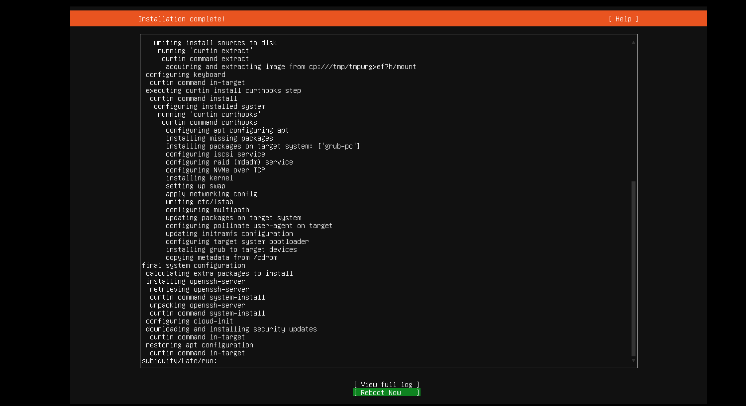 等待安装完成以后,光标调整到Reboot Now