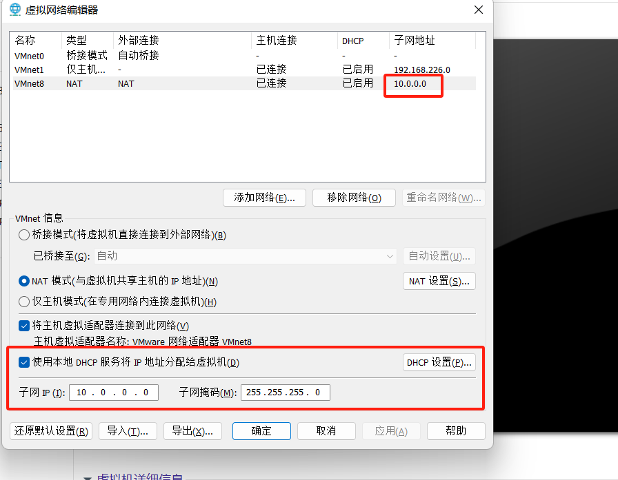 修改VM的虚拟网络编辑器