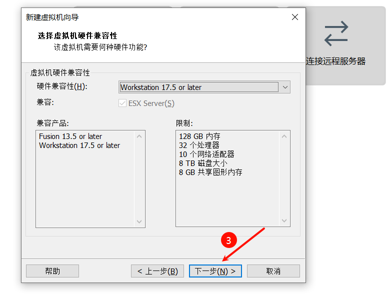 选择对应VM的版本,点击下一步