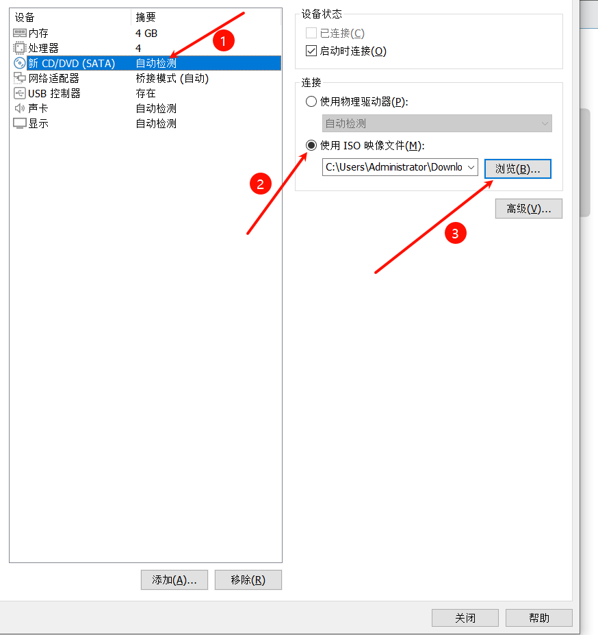 将下载的ISO文件配置进去,点击关闭
